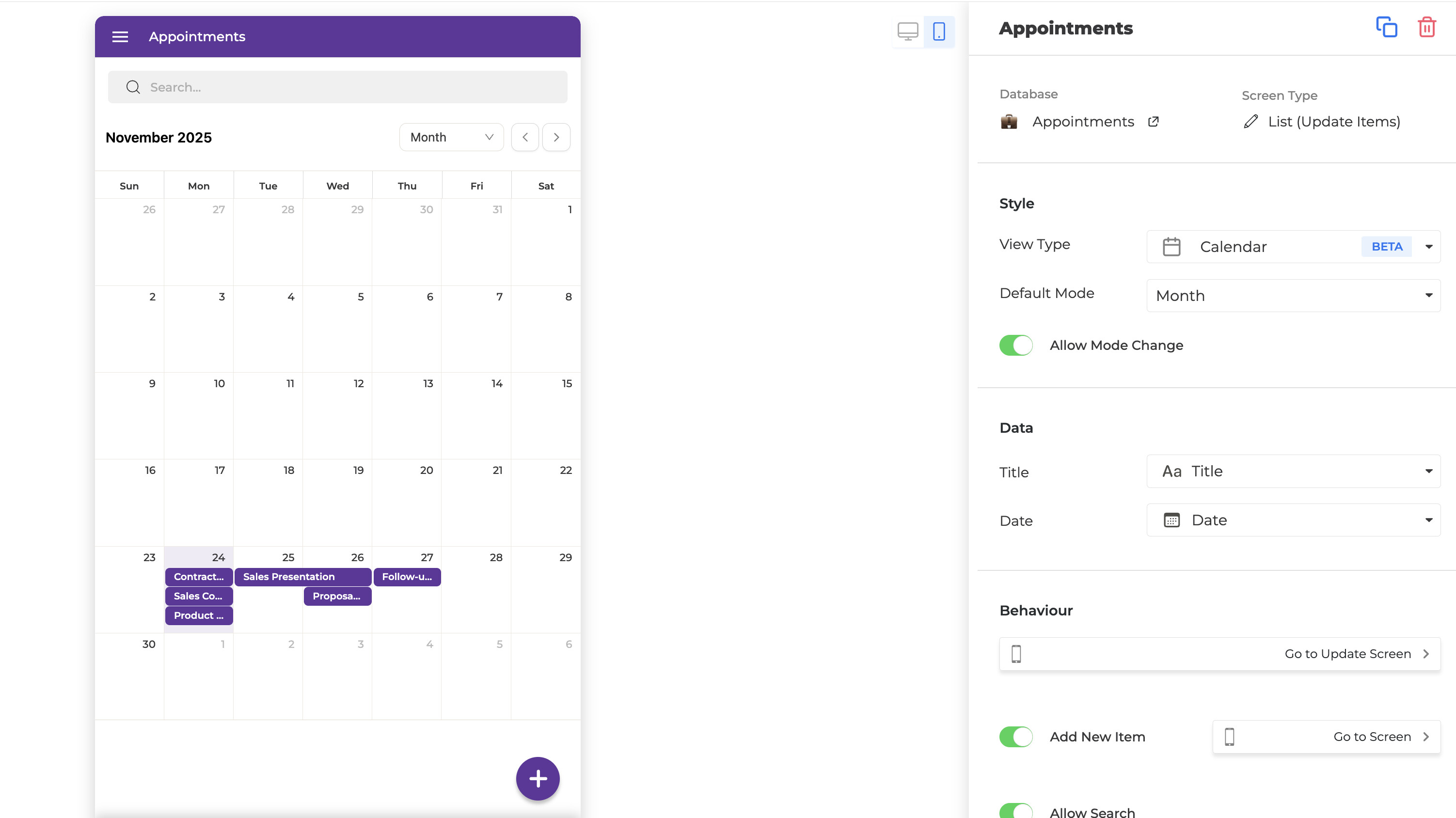 Calendar view quickly became one of the highest voted features in the community. We are happy to announce that the BETA version of the calendar view is now live on NotionApps. You can enable it in the “View Type” dropdown of any List screen. You could choose from one of the many default modes: Month, Week, Day. or Agenda.